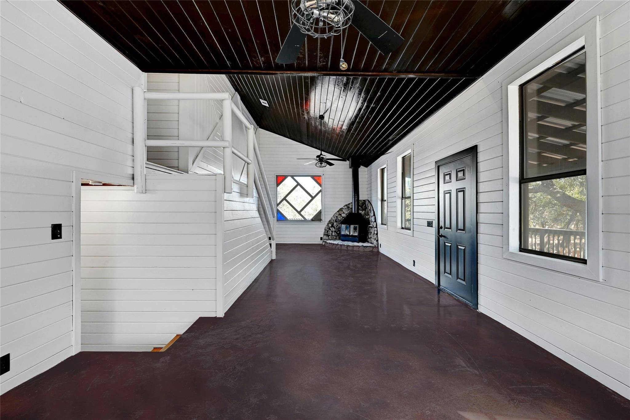 Incredible opportunity to own a fully renovated multilevel home on 4.82 acres, with additional acreage available. This private retreat has been meticulously updated from top to bottom, including new plumbing, electrical, roof, well improvements, and a brand-new septic system. The kitchen and bathrooms have been completely remodeled with new cabinetry, fixtures, and stainless steel appliances. The first floor offers the kitchen along with one bedroom and bath, while the second floor features a spacious living room with a large picture window showcasing the surrounding mature oaks, a cozy wood-burning stove, and access to an outdoor deck. The third floor includes another bedroom and bathroom, and the loft provides versatile space that can serve as a potential third bedroom, office, studio, or exercise room. A rare bonus for Central Texas, the home also includes a basement with laundry facilities. Outdoors, the acreage offers a peaceful Hill Country setting with native plants, mature trees, and plenty of room to roam. Buyers seeking more space can purchase the adjoining 15 acres, three legal lots, creating a nearly 20-acre property across four total lots (see listing agent for details). Located within Dripping Springs ISD and offering a lower tax rate, this property delivers privacy, natural beauty, and room to spread out. Information deemed reliable but not guaranteed; buyer to verify all information including measurements, schools, and taxes.